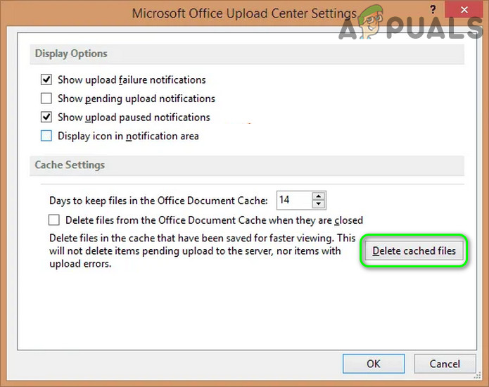 Open Settings of Office Upload Center - Now click on Delete Cached Files and reboot your PC.