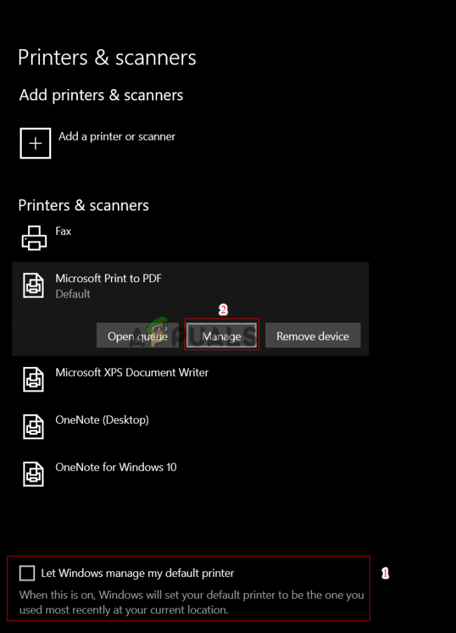 This solution is for users who are facing the printer not detected issue. These steps can also be performed before the solution suggested above. The issue with printers arises due to the fact that PDFs are written in PostScript language. This is the language which computers use to communicate with printers as mentioned in the previous solution. To enable Microsoft Print to PDF
