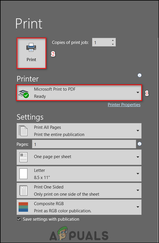 Saving any file or document as a PDF is treated the same as printing a file. This is due to the fact that the communication language for printers and PDFs are the same. Moreover, a printer is always selected by default by Windows. However, if by any chance, the settings are changed by a bug or after a Windows Update, then Publisher will definitely cause problems when trying to save a document as PDF. To solve this problem