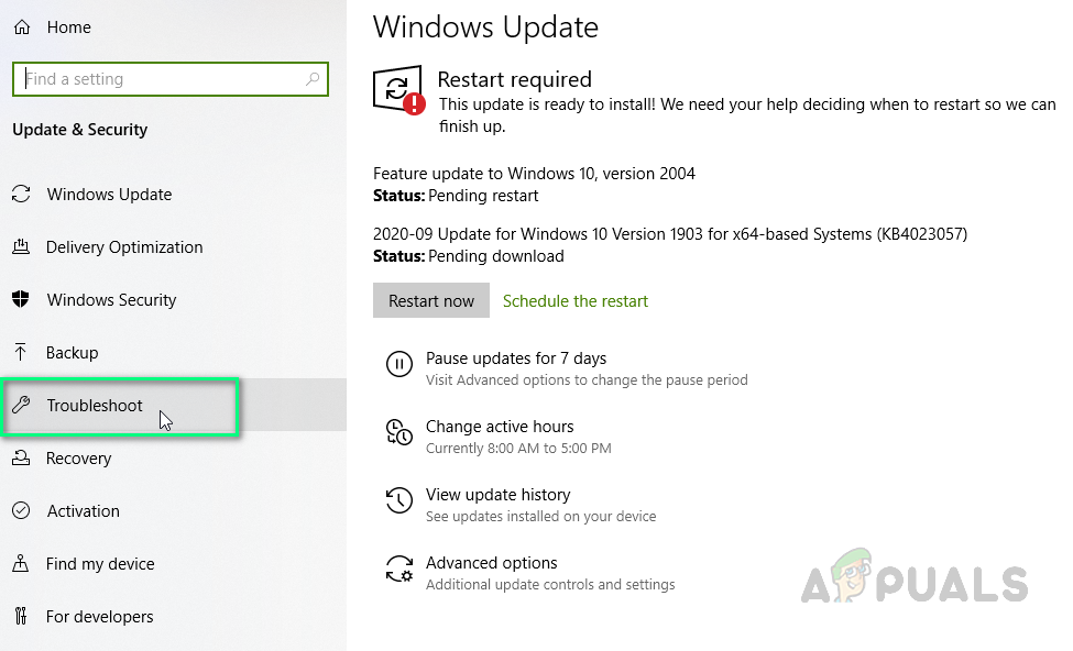 Opening Updates & Security - Click Troubleshoot on the left side.