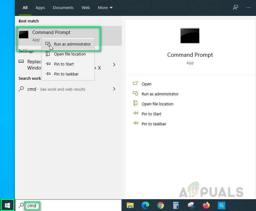 - Click Start and type cmd in the search bar. Run it as an administrator.