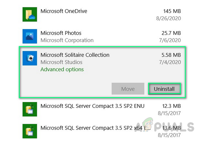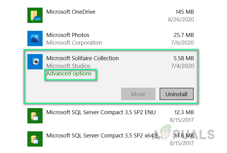 Resetting Game Data - Go back to Apps & features, select Microsoft Solitaire Collection and click Uninstall.