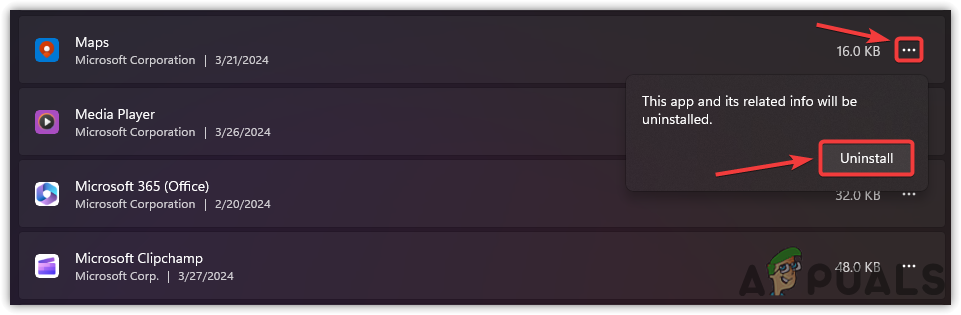 - Locate and select the application, click on the three dots, and choose Uninstall.