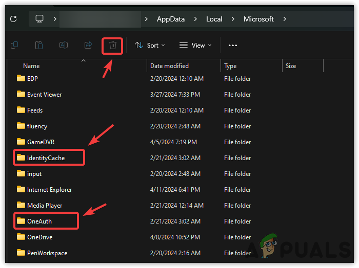 To begin, let’s delete the Microsoft Cache folders holding user-related data, such as credentials, account details, and frequently accessed information. If this cache data becomes corrupted, it might lead to unexpected application behavior. Thus, we’ll clear both Microsoft’s cache and the application’s cache.