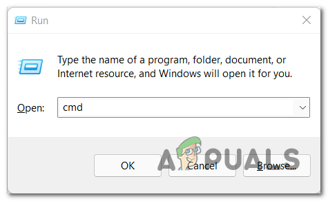 - Next, inside the Run box, type ‘cmd’ inside the text box, then press Ctrl + Shift + Enter to open up an elevated Command Prompt.