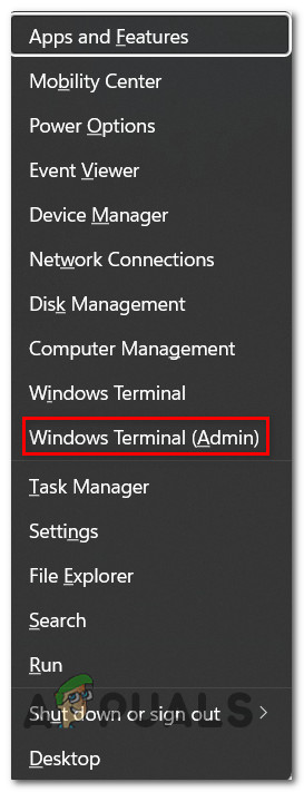 - From the context menu of the taskbar, click on Windows Terminal (Admin) from the list of available options.