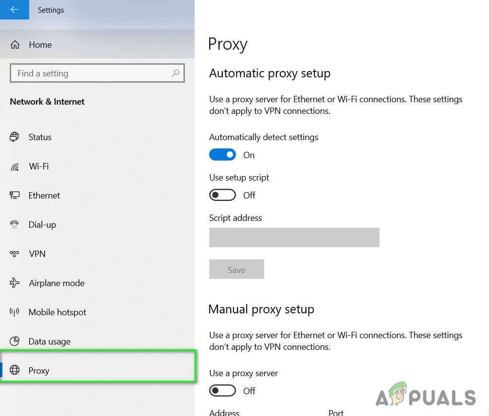 Proxy Server acts as an intermediary between your computer system and the internet, When you send a request, it is sent to the Proxy Server, and then it is sent to the server on the Internet. If this setting is enabled, then it can interfere with the authentication process because the Server that is trying to authenticate the user; it might think that you are accessing your account from a different device or location and will consider this as an attempt by someone to steal your credentials and will block the authentication request. Therefore it is suggested to Turnoff your proxy settings.