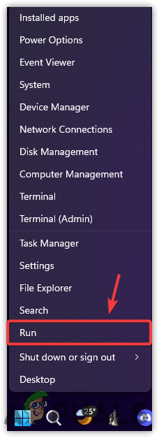 - Right-click the Start Menu and select the Run option to open the Run Program.