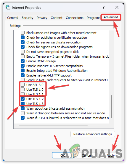 - Ensure that TLS 1.2 and TLS 1.3 are selected.
