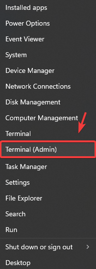 - Right-click the Start Menu and choose Terminal (Admin).