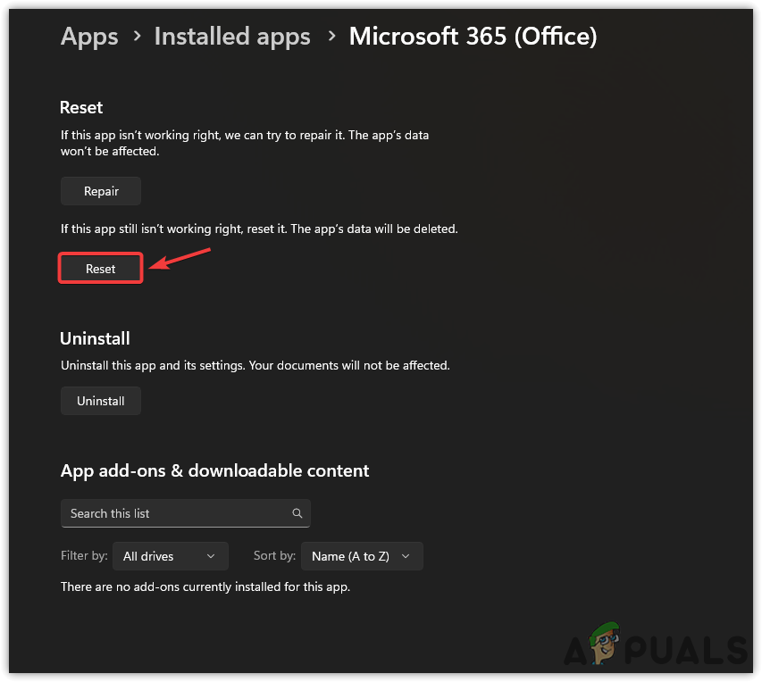 - Scroll down to the Reset option and click on Reset. You can also try the Repair option before resetting Microsoft Teams. If that doesn’t work, then try the reset option.