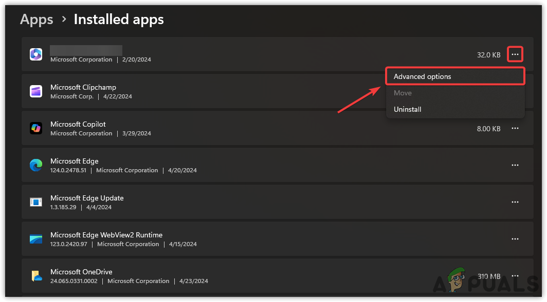 - Click on the three dots and select Advanced options.
