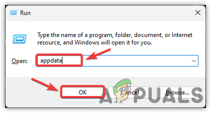 - Here, input appdata in the search box and hit OK to open it.