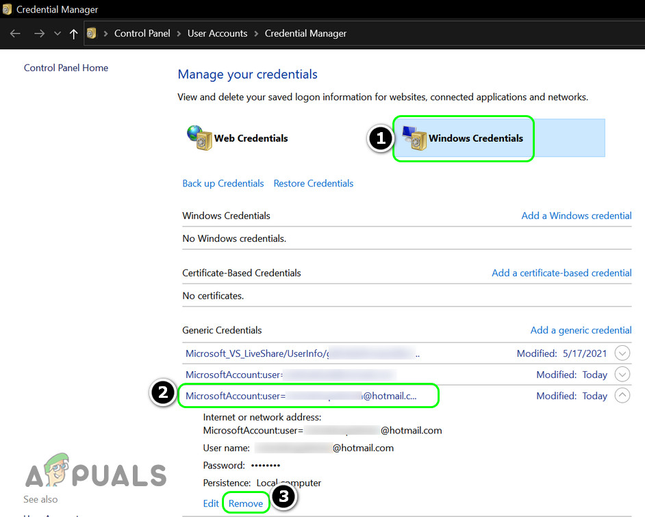 Open Credential Manager - Then navigate to the Windows Credential tab and expand the MSTeams entry (or an entry related to your Microsoft account used with Teams).