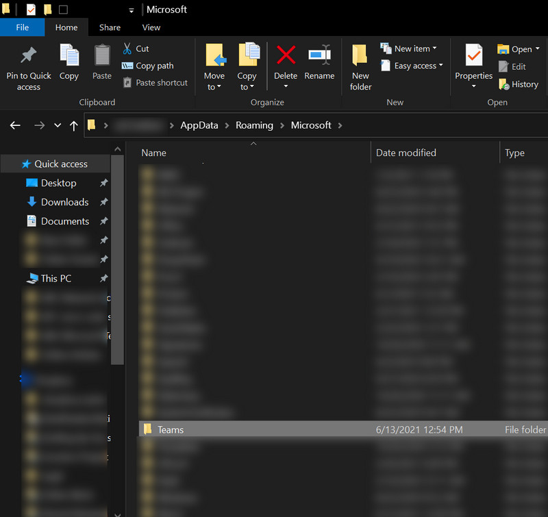 Delete the Teams Folder in the Microsoft Roaming Appdata Directory