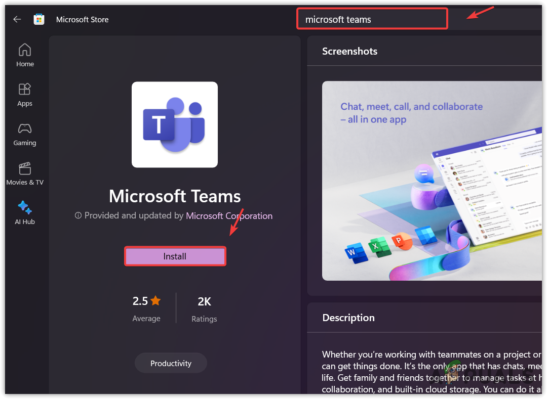- Once the Microsoft Teams is uninstalled, open the Microsoft Store and install the Microsoft Teams.