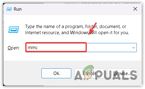 - Here, type mmc in the input box and click OK to run the Microsoft Manage Console.