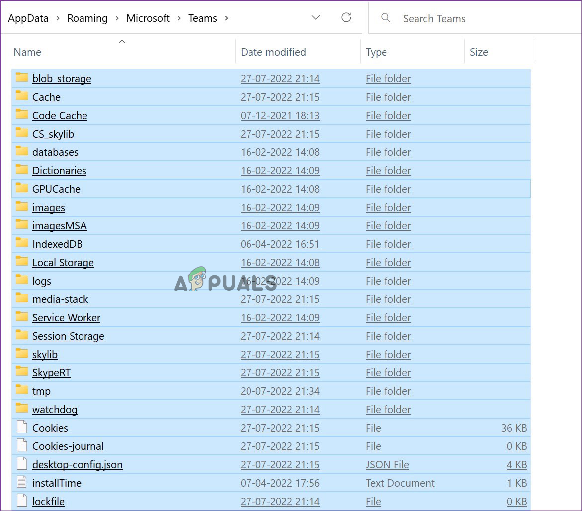 Select all the folders inside the Teams folder and delete - Restart your computer, launch the application, and check if it helps to solve the issue.