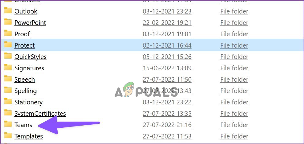 - Then click on the Microsoft folder and then click on the Teams folder.