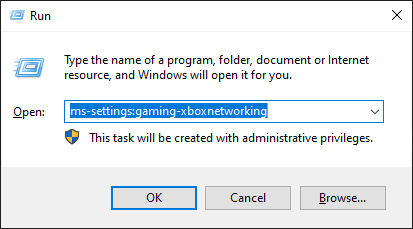 - Open the Xbox Networking tab of the Settings App by pressing the Windows key + R, typing