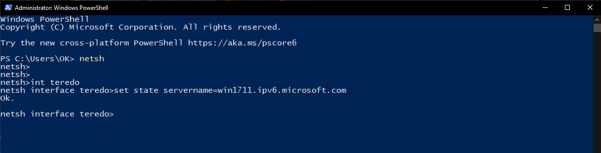 netsh int teredo set state servername=win1711.ipv6.microsoft.com
