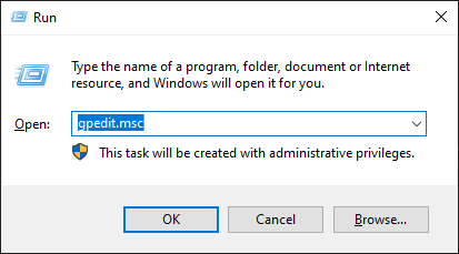 - Open the Local Group Policy Editor by pressing the Windows key + R, typing gpedit.msc and hitting Enter. (Note: This tool is only available in select versions of Windows 10)