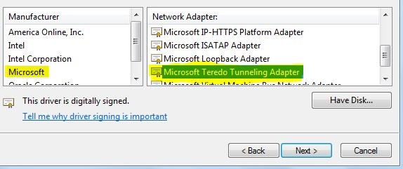 Microsoft’s Teredo Tunneling Adapter Driver