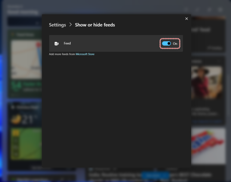 - Toggle off the feeds you do not wish to see.