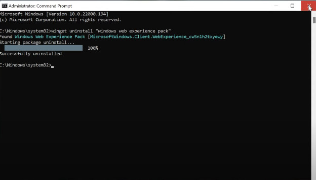 Get-AppxPackage *WebExperience* | Remove-AppxPackage