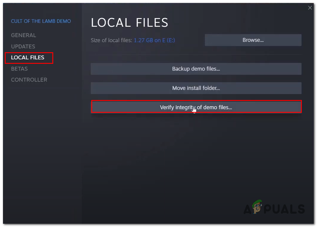 Verify game file integrity - In the new window, Click on Local Files on the left menu.