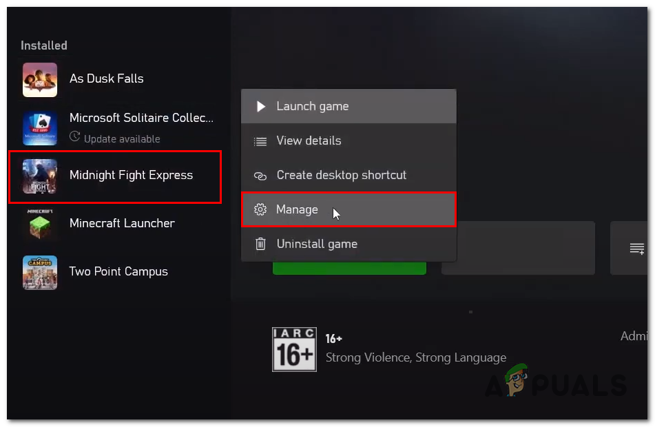 - Open the Xbox gaming application, and in the panel on the left side, locate Midnight fight express.