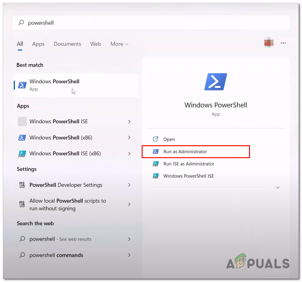 - Press the Windows key on your keyboard to open the windows start menu, and in the windows start menu search bar, type Powershell and run it as an administrator.
