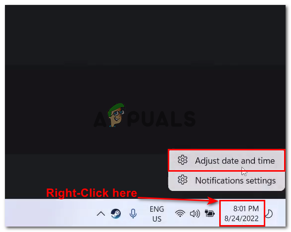 - Make a Right-Click on the bottom-left of your screen where time is present, as shown in the image below.