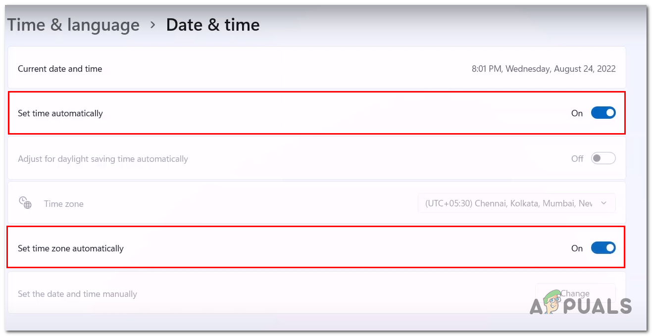 Configuring date and time correctly. - Similarly, Toggle the Select time zone automatically switch to on.