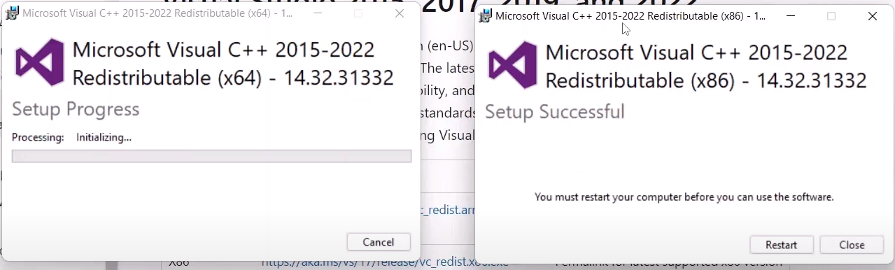 Installing the Visual C++ redistributables - Once Finished installation, Reboot your computer.
