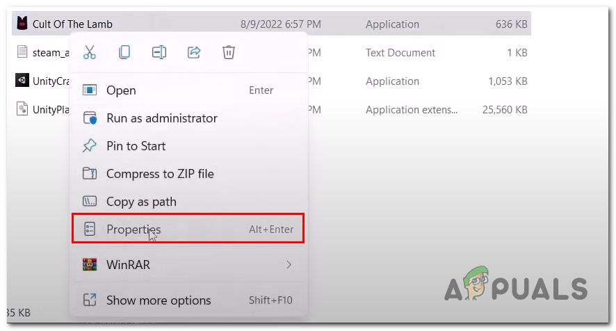 - Now Right-Click on the Midnight Fight Express application file and click on Properties.