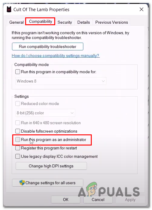 Running the game as an administrator. - Now, click on Compatibility in the navigation menu on the top of the newly opened window.