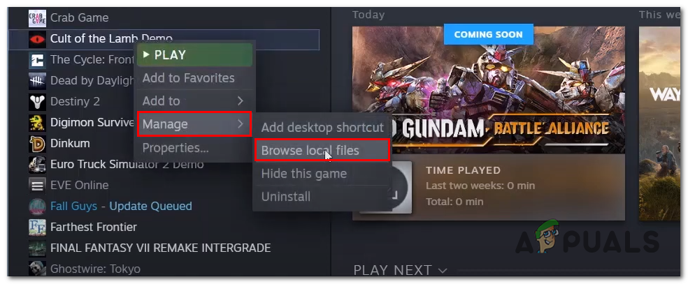 Running the game as an administrator. - After that, click on Browse Local Files. This will take you directly to the root folder of your game.