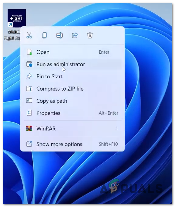 Running the program as an administrator. - Head on to the desktop and Right-Click on Midnight fight express.