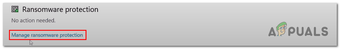 - Scroll down, Click on Manage Ransomware protection under the ransomware protection settings.