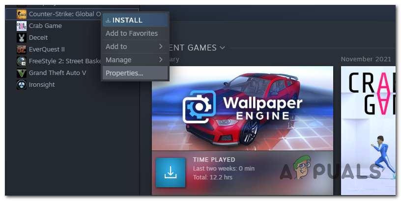 - In the panel on the left of steams user interface, locate your game i.e., Midnight Fight Express.