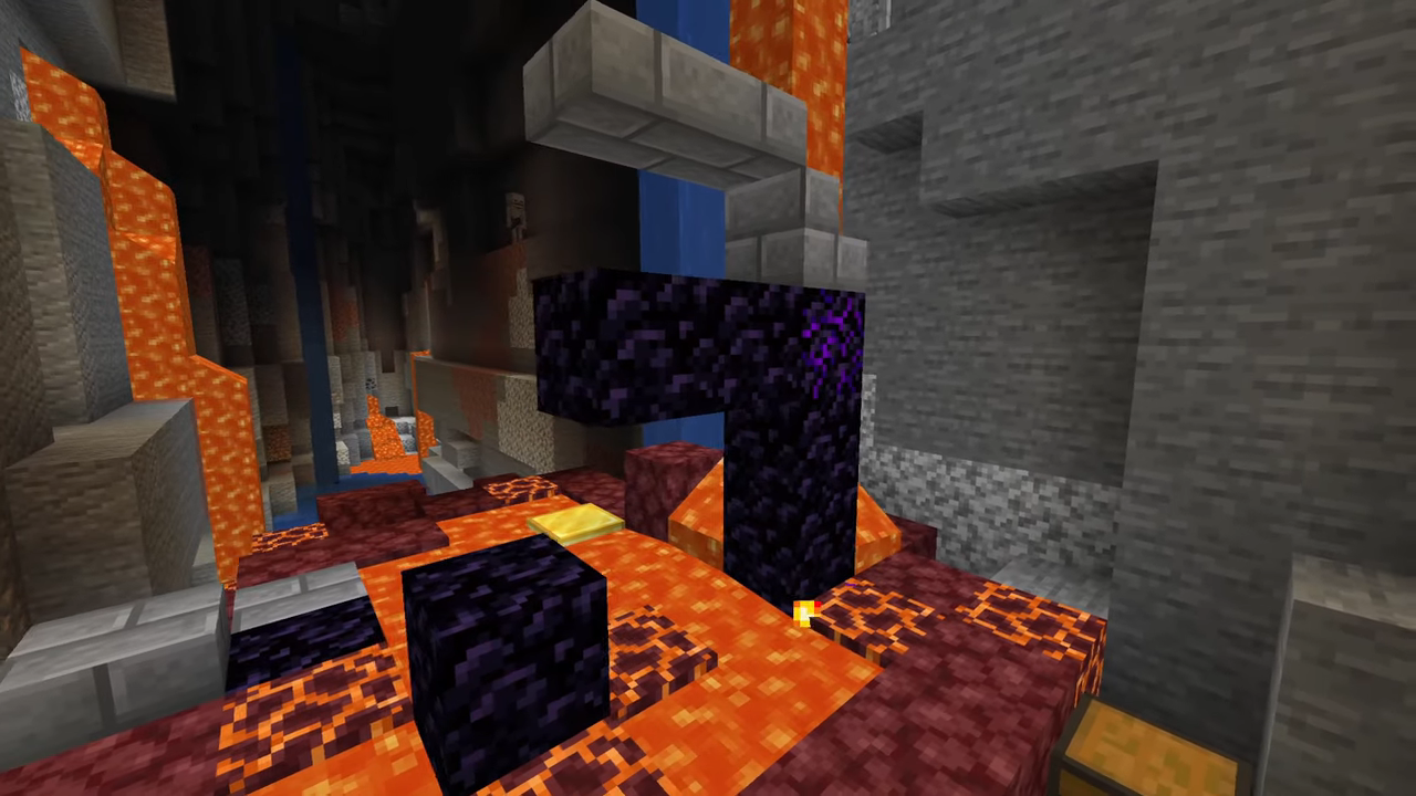 Obsidian can be a bit tricky to acquire. First of all, you need to have either a diamond or netherite pickaxe with you for mining this rare material. Then, you’ll need to head over to the Nether as lava is required for making obsidian. You should also have a reasonable amount of water buckets with you.
