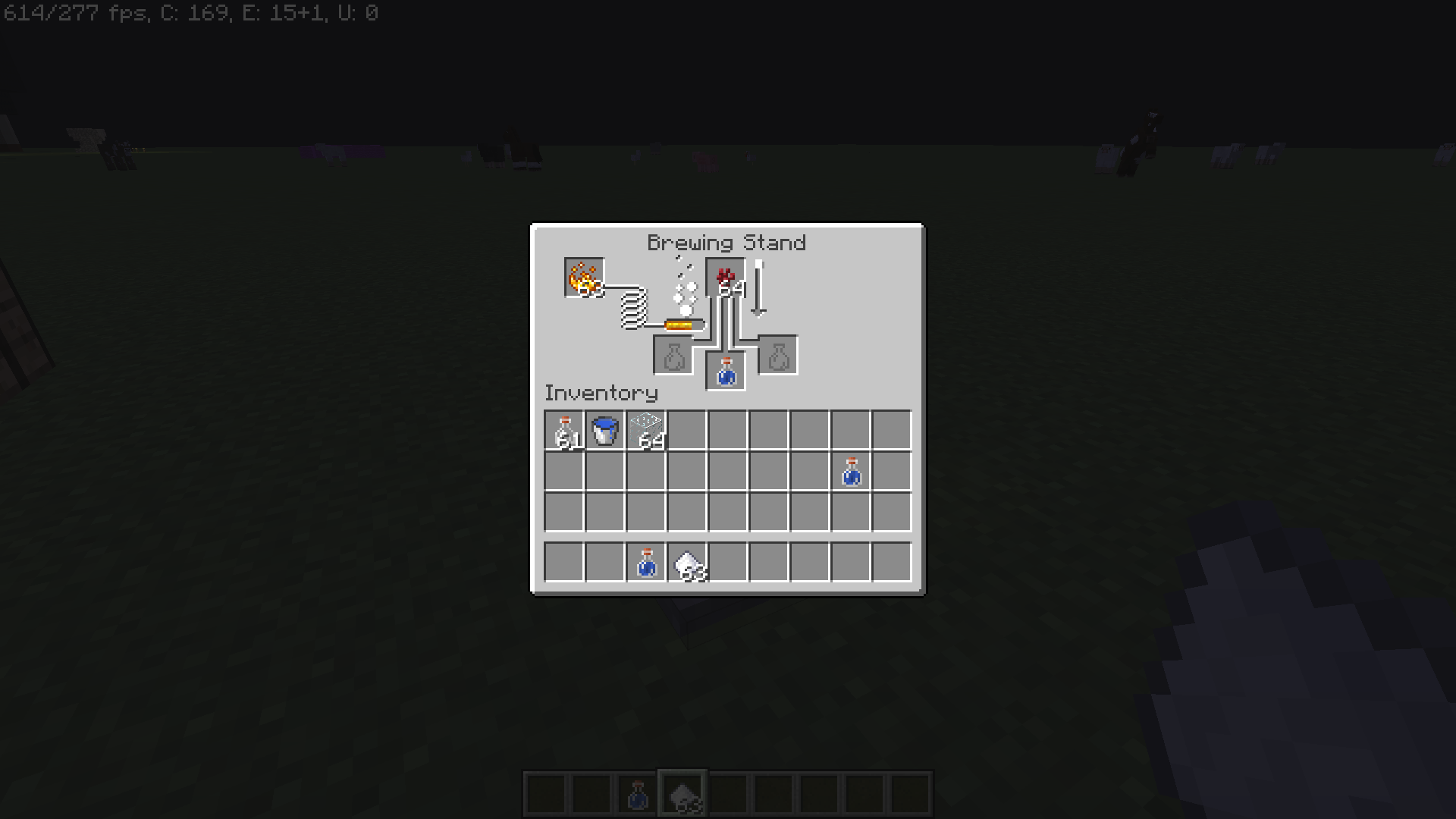 Now head to the brewing stand and place your water bottle with the blaze powder as fuel and an ingredient to make a potion without effect.