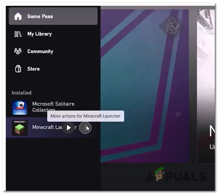 - Right-Click or click on the Three dots beside Minecraft.