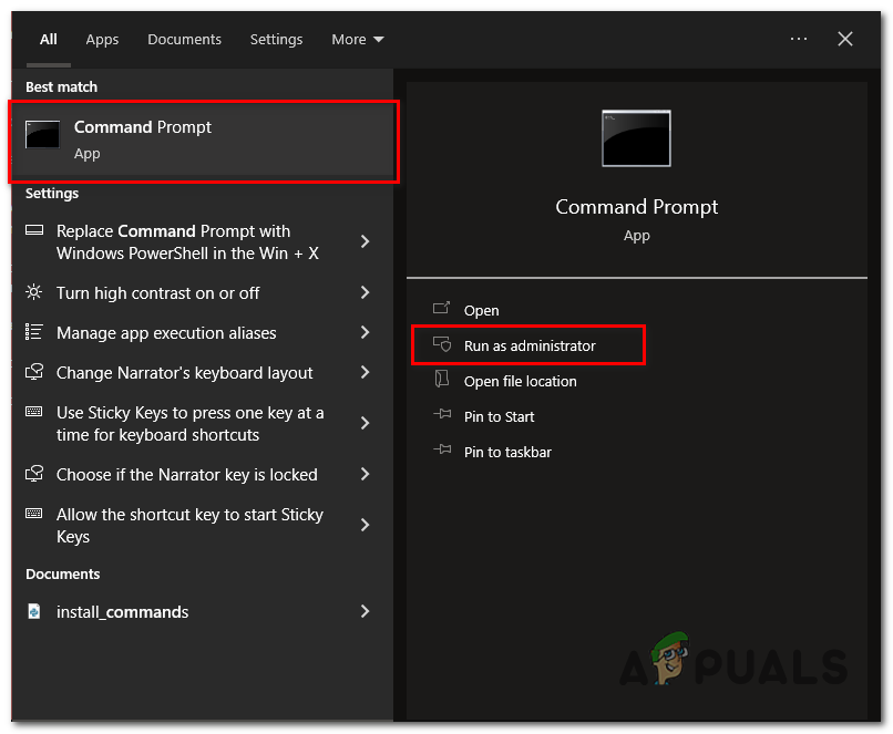 - Search CMD or command prompt in the search box and Run as administrator.
