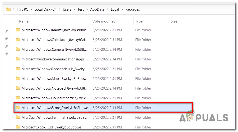 - Inside the Packages folder, Locate a folder Named Microsoft.WindowsStore_8wekyb3d8bbwe.