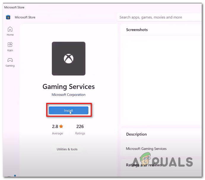 Reinstalling Xbox Gaming services - Click on Install.
