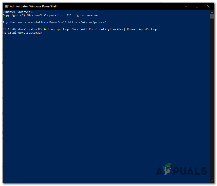 - Paste the following command, what this command will do is uninstall Xbox identity provider if you already had it installed.
