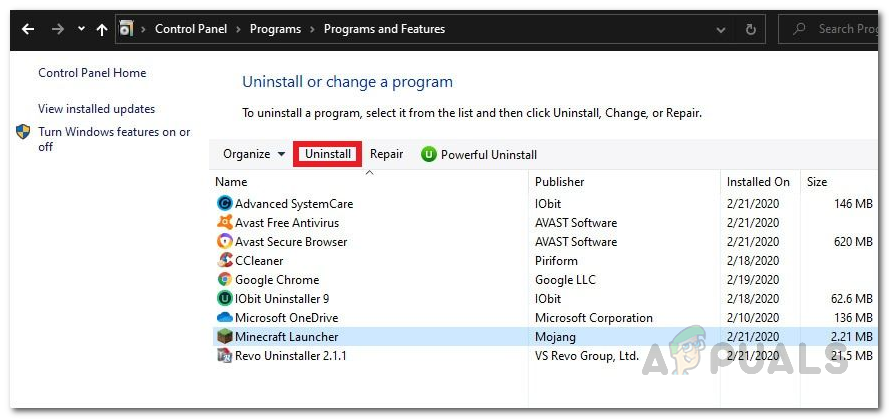 If none of the above solutions have fixed the issue for you and your Minecraft launcher is still not opening up, there is a good chance that the issue is being caused by corrupted Minecraft installation files on your system. In such a case, you will have to completely remove Minecraft from your system and then install it again. To do this, follow the instructions down below: