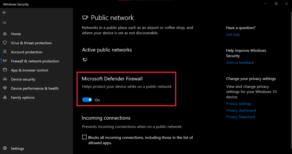 - Find the Microsoft Defender Firewall option and toggle it off.